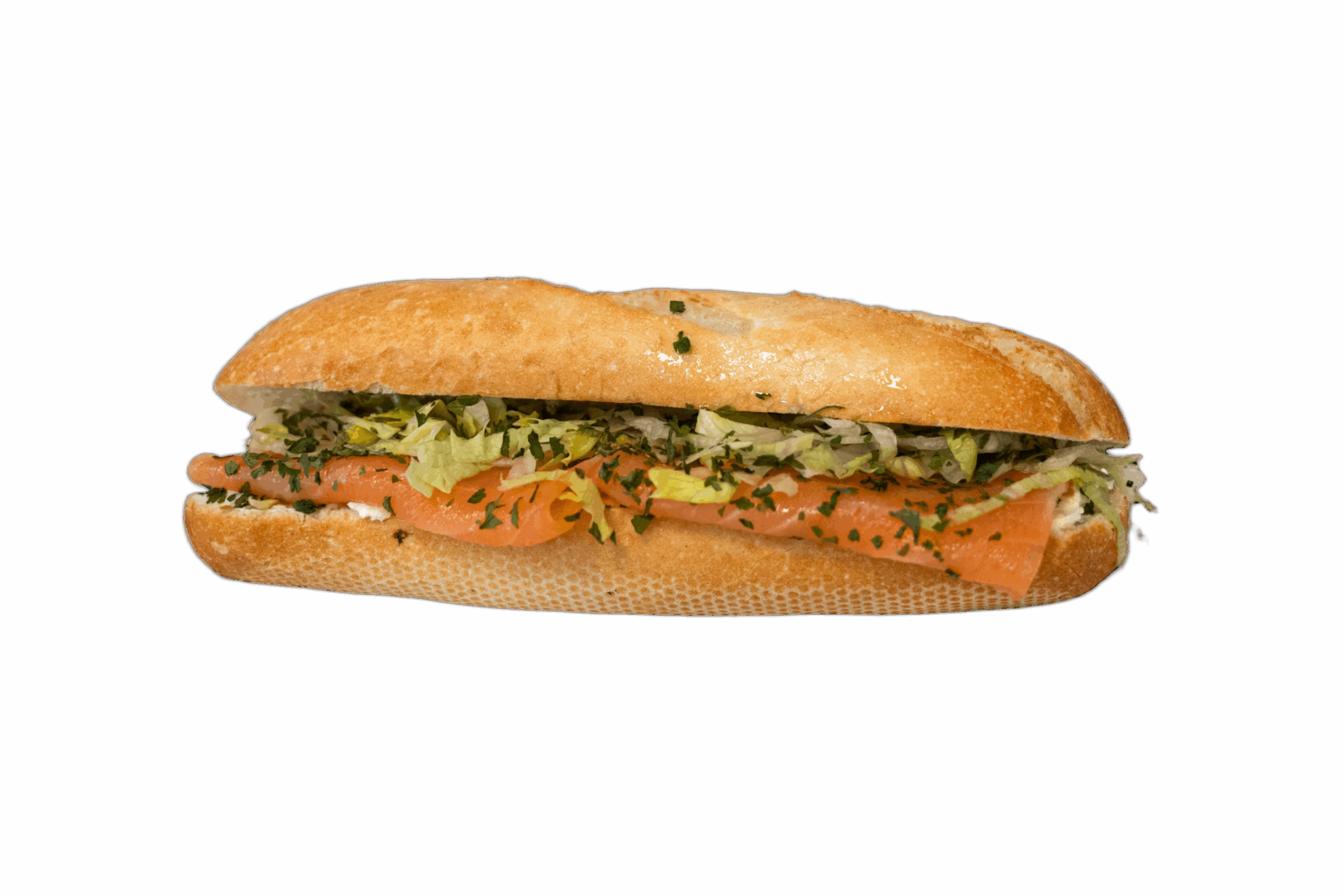 Dit heerlijke en rijkelijk belegde broodje met gerookte zalm, afgemaakt met sla en peterselie.