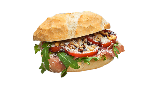 Wilt u echt eens iets anders proberen, kies dan ons onovertroffen Floriade broodje! Bijzonder tot de laatste hap! Belegd met rucola, parmaham, tomaat, pijnboompitten, parmezaanse kaas, balsamicocreme.